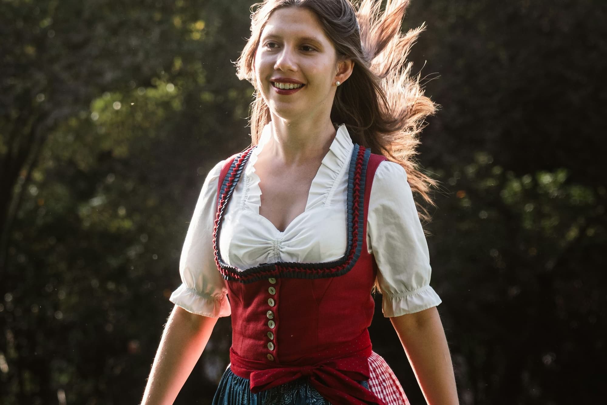 During the festival, almost everyone wears traditional Bavarian attire: the dirndl (for women) and lederhosen (leather breeches for men). The bow on a woman’s apron sends a clear message: